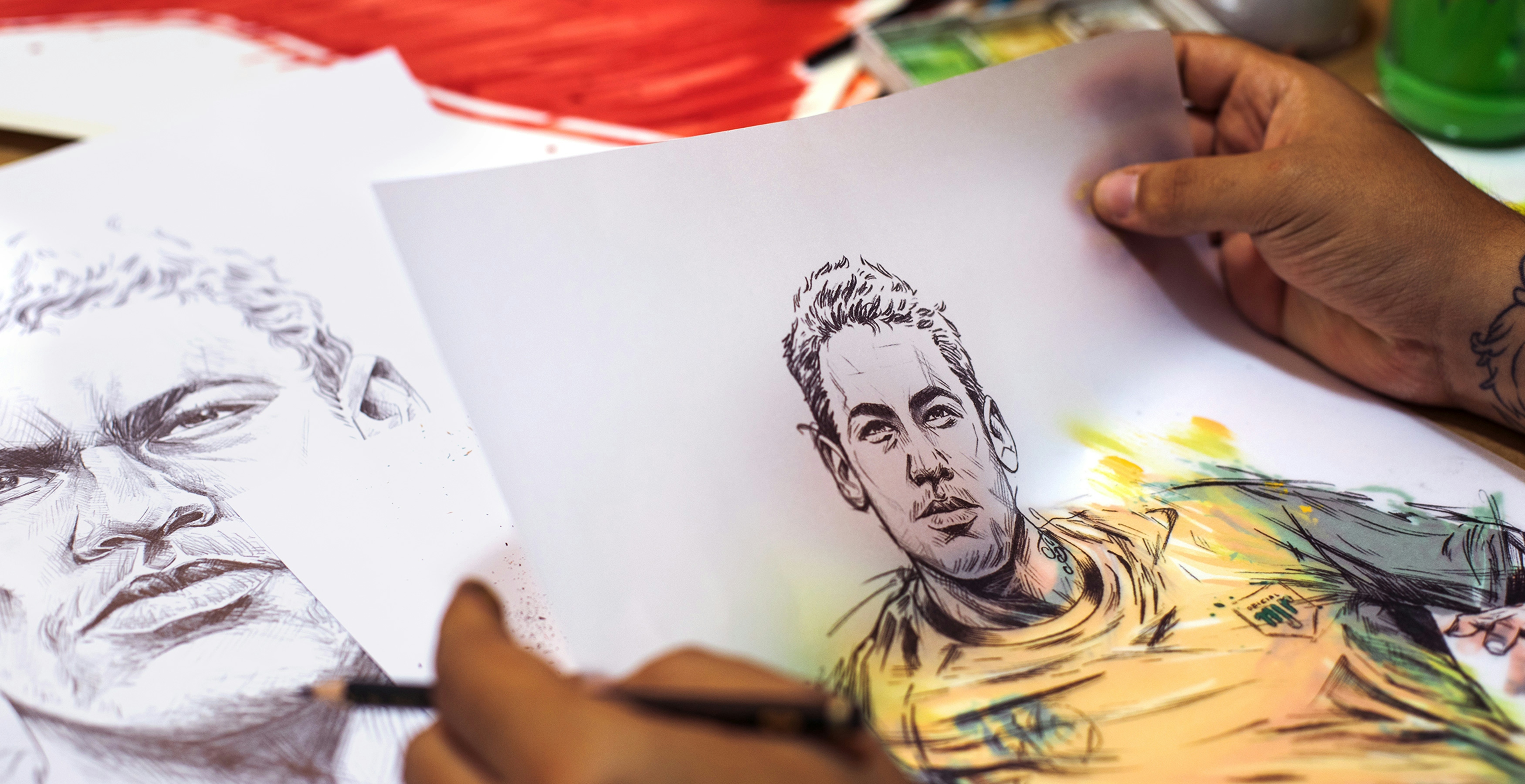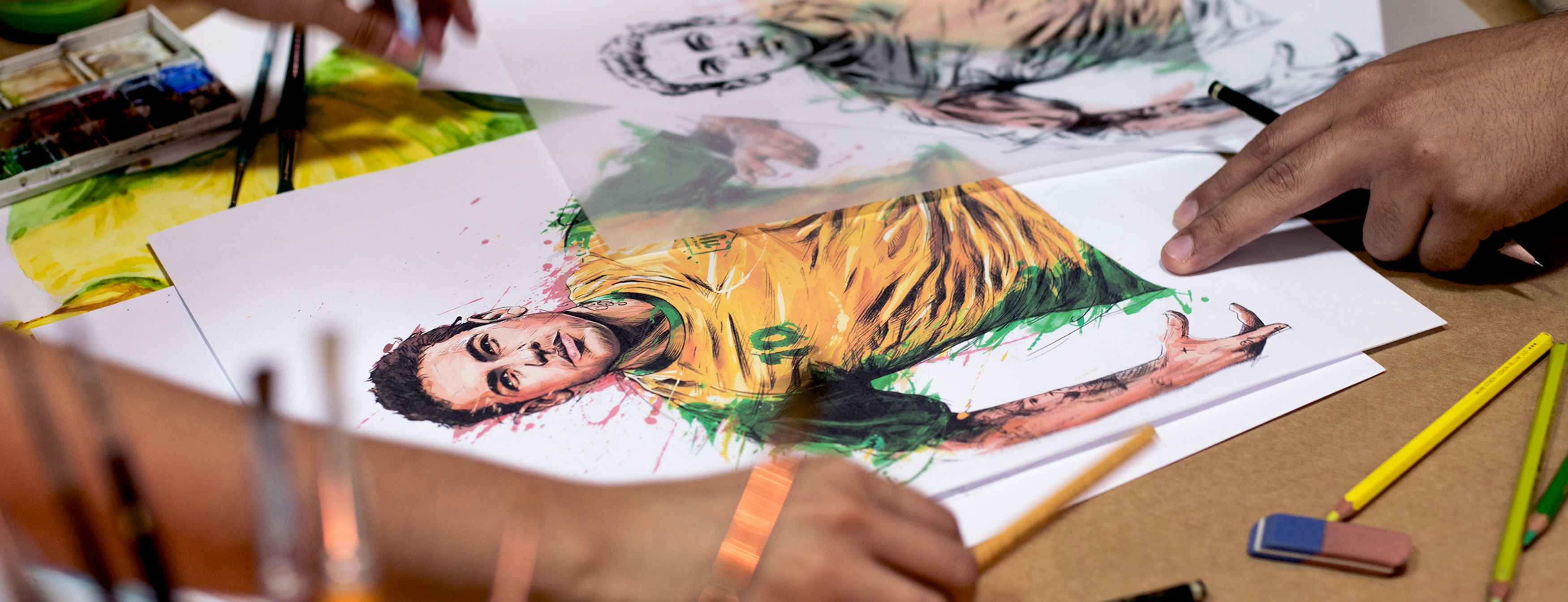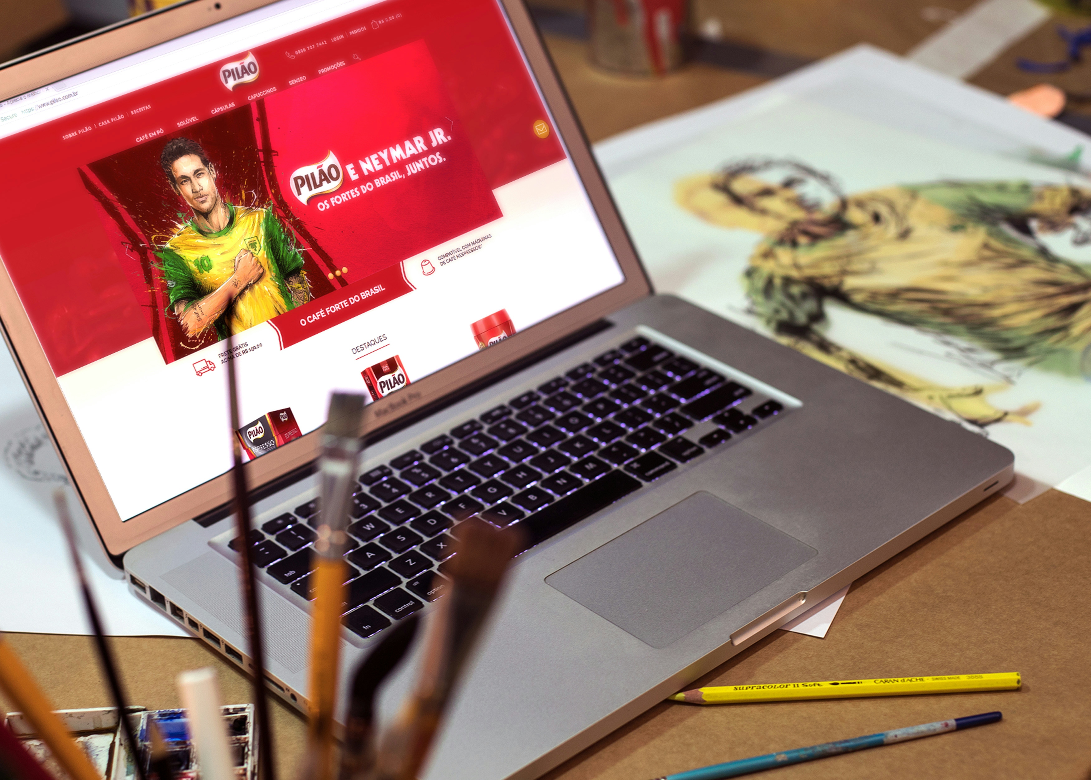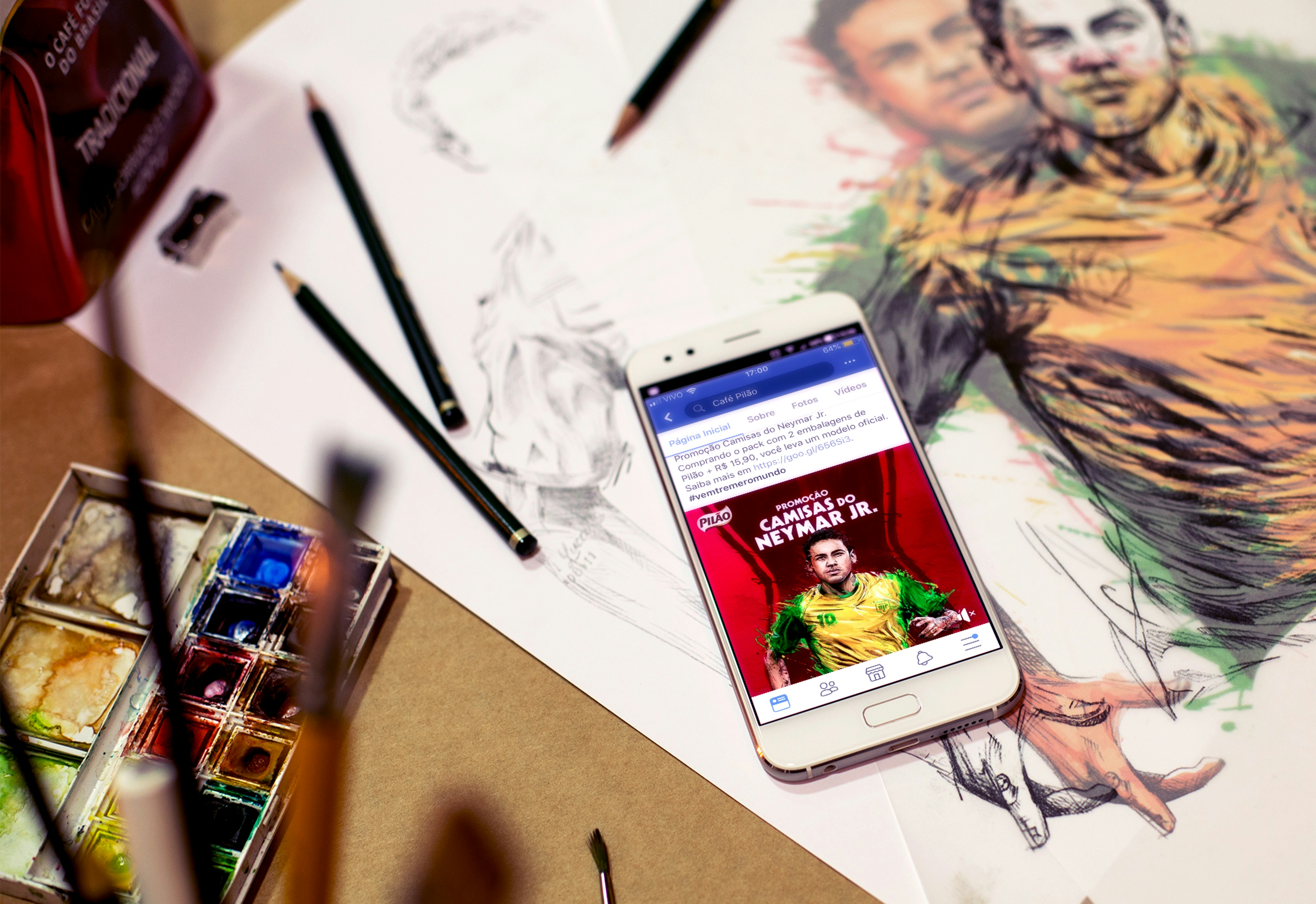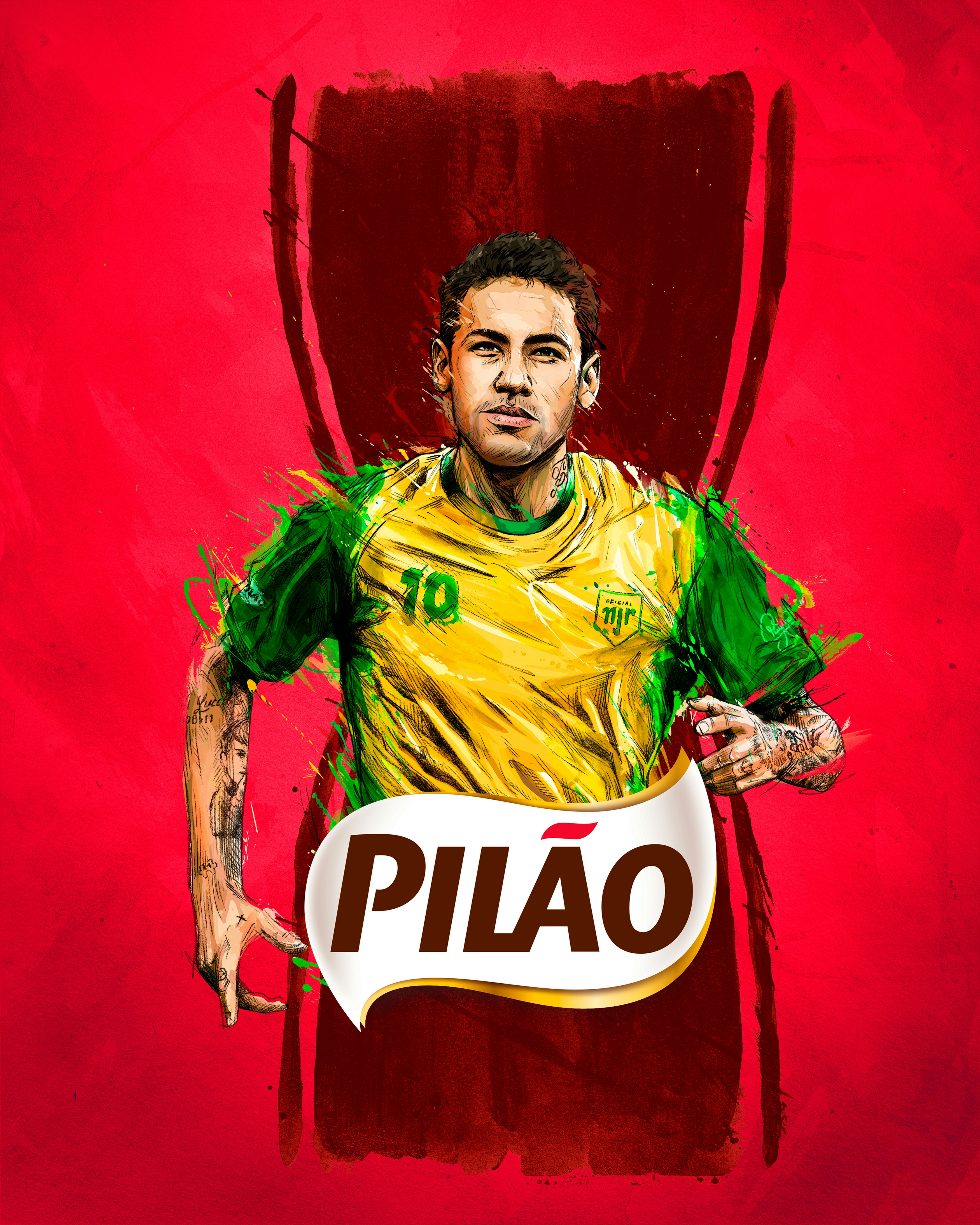 During the World Cup, we were very excited to be invited by JWT to illustrate the Pilão Coffee campaign with the star of our national team, Neymar. It was double the excitement. The proposed language for this work aims for a result with manual execution, lots of expression, and some digital intervention.